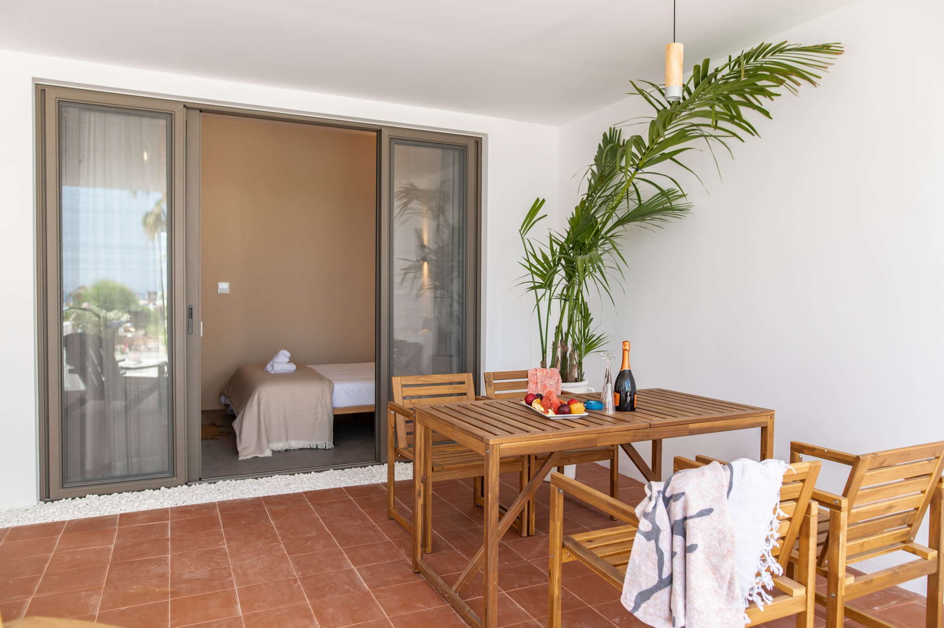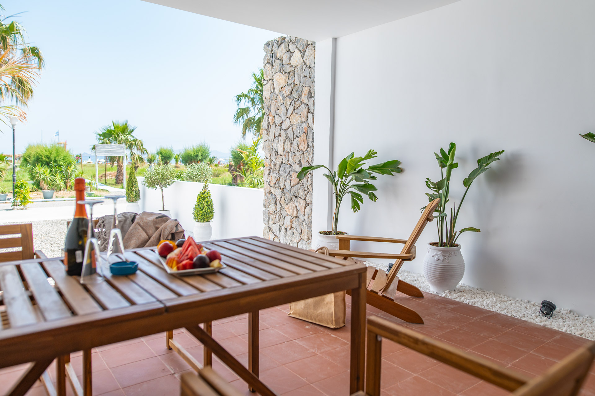 With air-conditioned interiors, enjoy two serene bedrooms and a modern bathroom equipped with a refreshing shower and premium amenities. Step onto your private terrace to soak in stunning sea views—perfect for morning coffee or sunset relaxation. Inside, a spacious wardrobe and a flat-screen TV with satellite channels provide added convenience and entertainment.