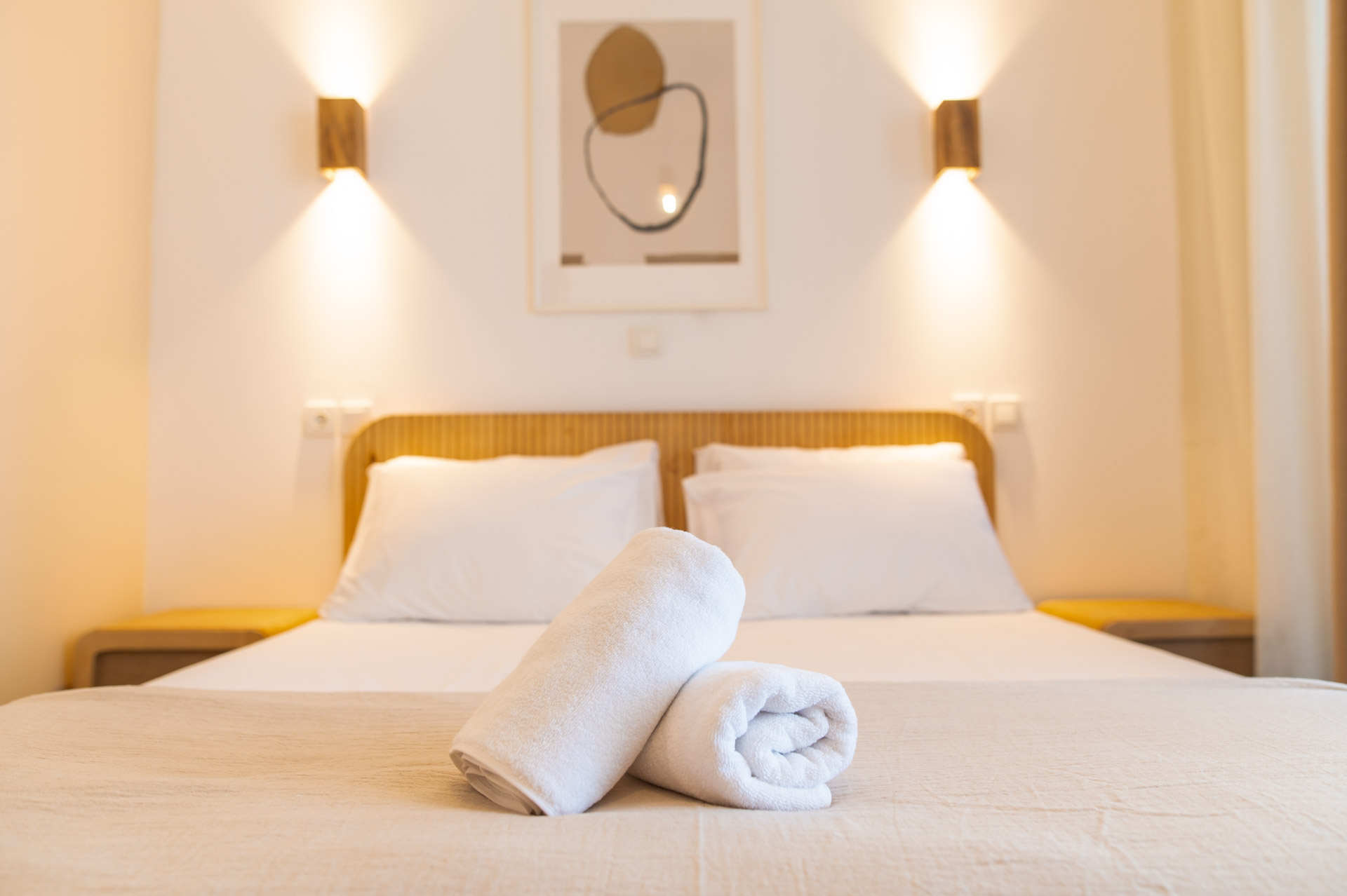 Experience elevated comfort at Limango Boutique Hotel in Tigaki, Kos. This sophisticated two-bedroom holiday home offers a private entrance, ensuring a peaceful retreat for families or friends.